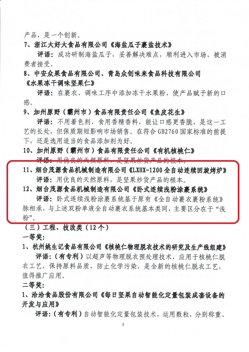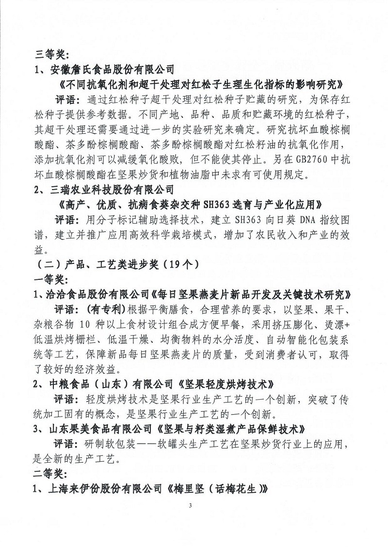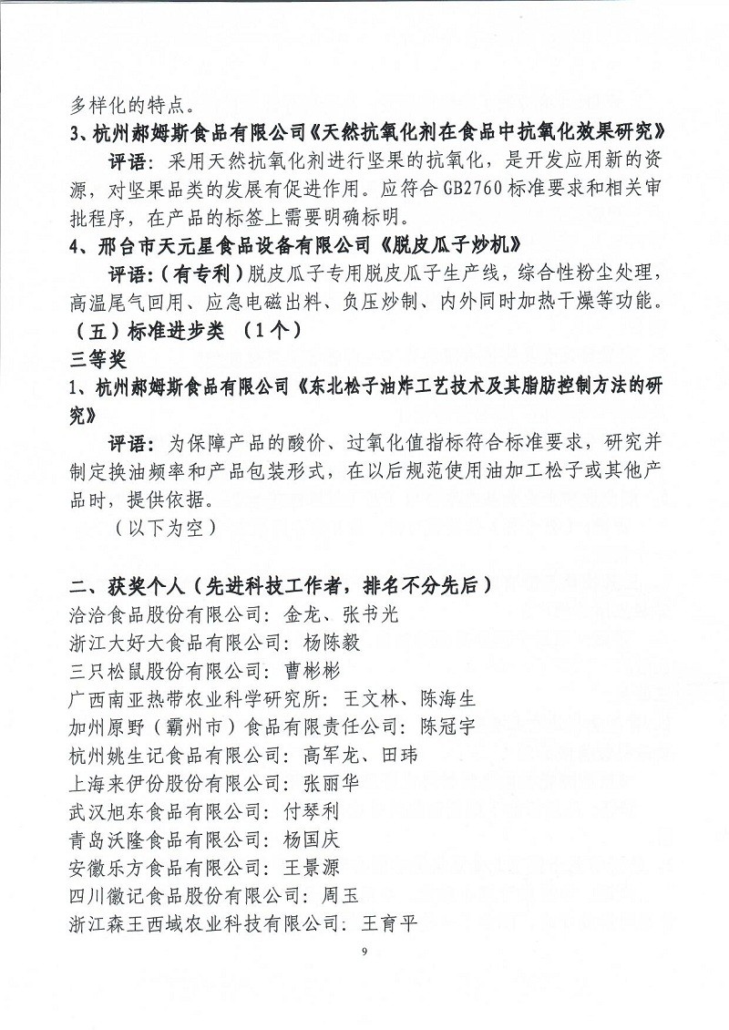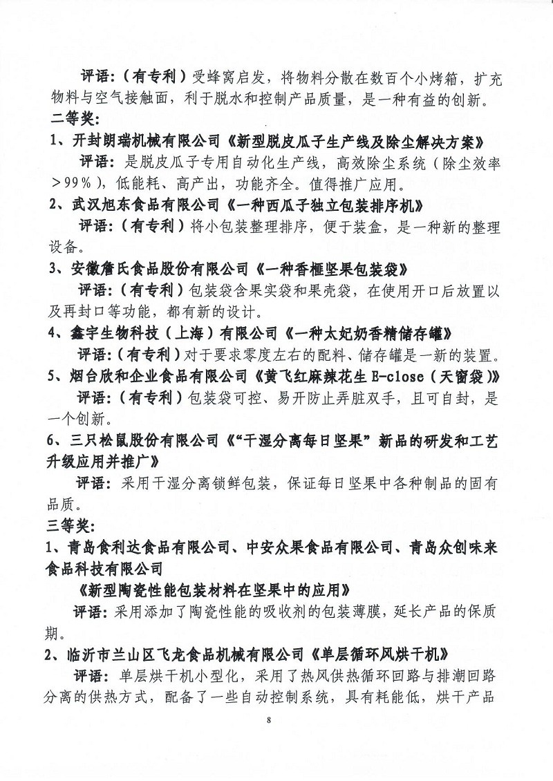 關(guān)于表彰第六屆(2018-2019年度)全國堅果炒貨食品行業(yè)科學(xué)技術(shù)進步獎的通知