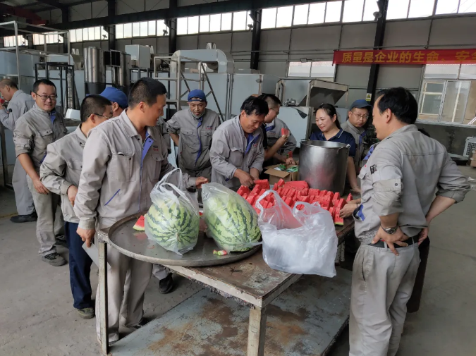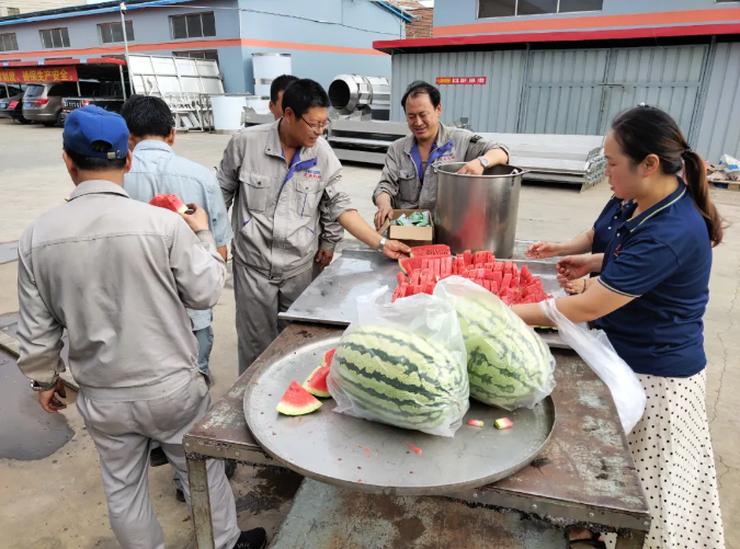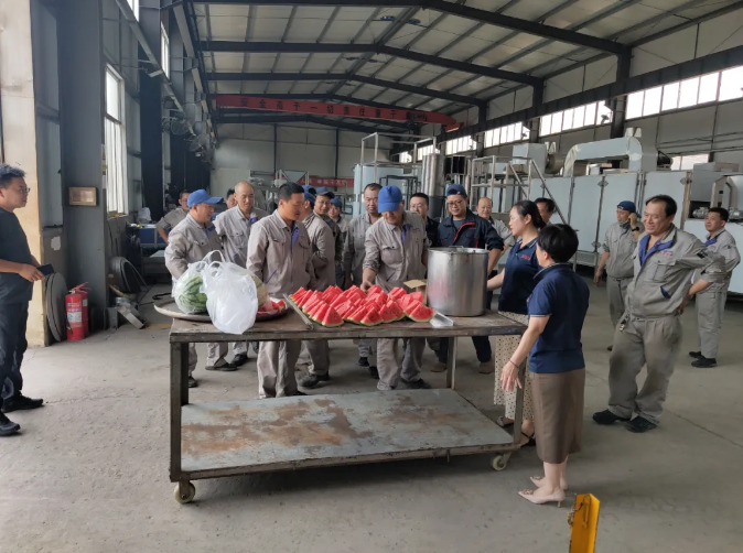 花生機(jī)械和堅(jiān)果炒貨設(shè)備近日,為進(jìn)一步做好暑期防暑降溫安全生產(chǎn)工作,公司工會(huì)以“情系一線職工”為主題,開展了“平安度夏送清涼”活動(dòng),為一線員工購買了西瓜、冷飲,并準(zhǔn)備了綠豆湯。