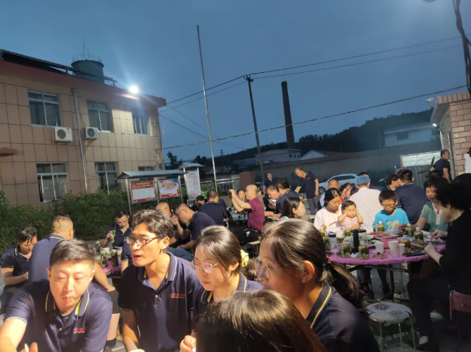 員工們一邊看演出一邊進(jìn)餐,現(xiàn)場氣氛火爆熱烈。