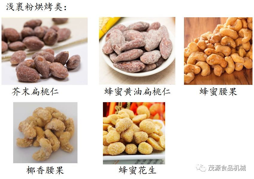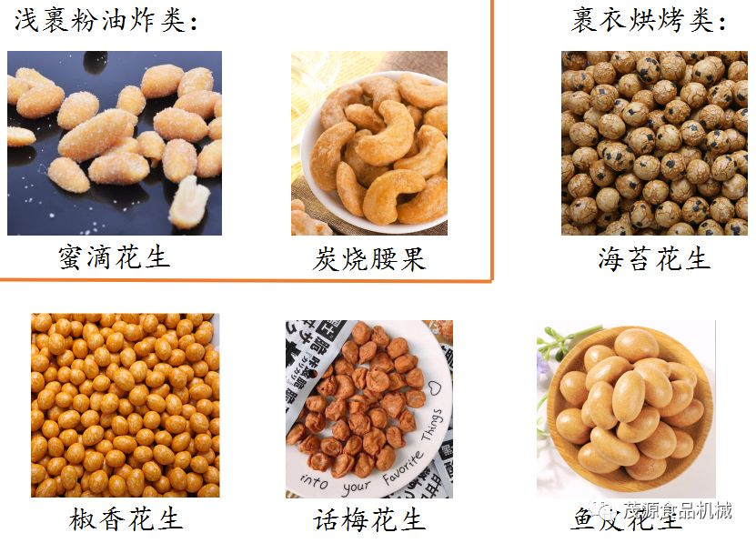 裹衣/裹粉類產(chǎn)品是近年來較為熱銷的產(chǎn)品之一。通過糖漿向物料表面沾粘面粉+糕粉+變性淀粉+其他特色配料,來改變或賦予原有堅果/籽類所不具備的形狀/風味。